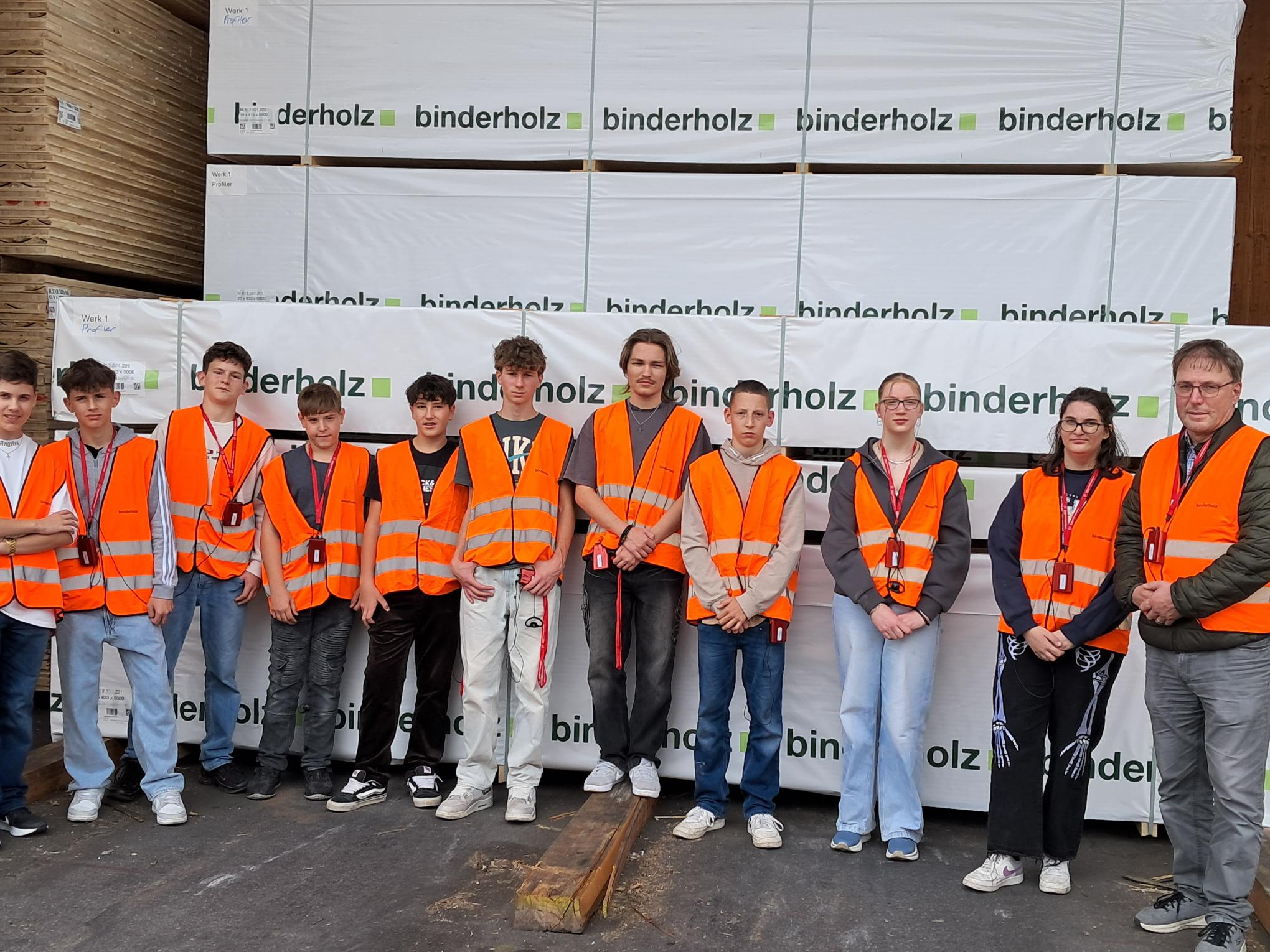 Am 16.September 2025 fand nachmittags eine Betriebserkundung bei der Fa. Binder mit den Holz/Bau Fachbereichsleuten der PTS Oberndorf statt. Die Jugendlichen konnten Einblick in die verschiedenen Berufe und Verarbeitungstechniken von Holz gewinnen. Sie gelangten zur Erkenntnis, dass aus dem Rohstoff Holz Vieles gewonnen werden kann und weiter verwertet wird.