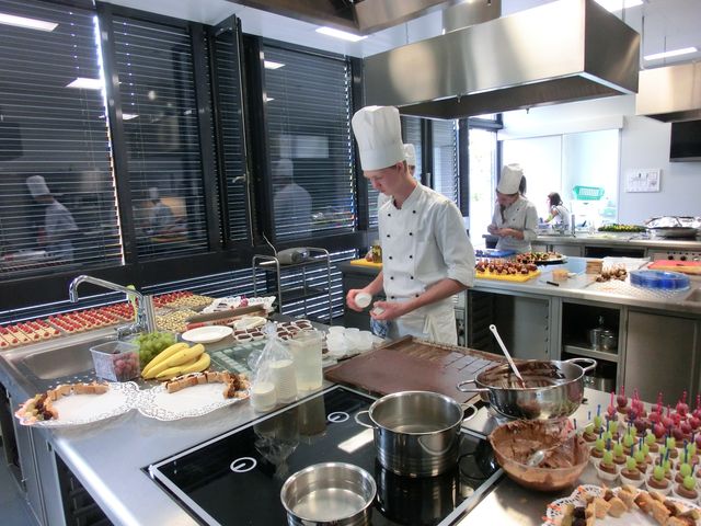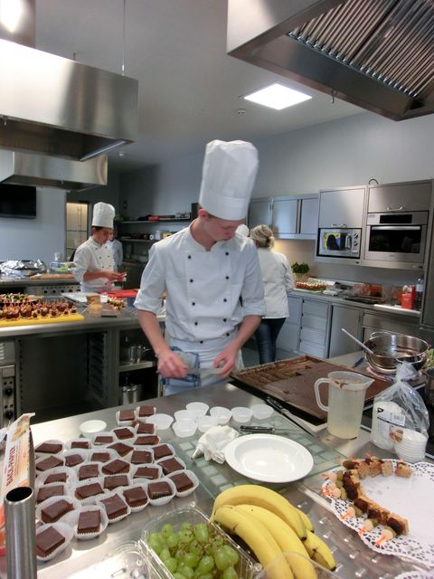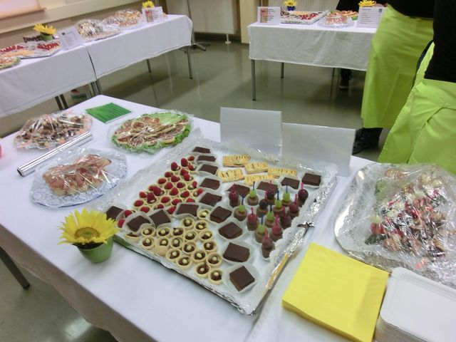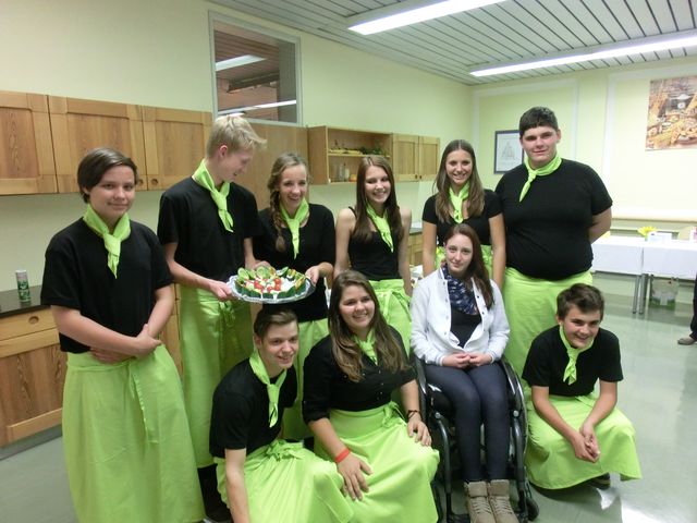Im Rahmen der Veranstaltung des Bildungswerkes Oberndorf und Lamprechtshausen „Freunderl sucht Wirtschaft“, einem Kultkabarett des Trios Baumann, Blaickner und Messner“ gestalteten die Schüler und Schülerinnen der PTS Oberndorf (Fachbereich Tourismus und Freiwillige aus dem Dienstleistungsbereich) ein Buffet zur Verköstigung der zahlreich erschienenen Gäste. Die Häppchen und Süßigkeiten waren von den SchülerInnen selbst kreiert und mit Liebe angefertigt worden. Dazu standen sie ganztägig in der Küche. Am Abend bedienten sie eifrig die Gäste. Die Gäste und die Künstler überzeugten sich von der Hochwertigkeit des Buffets und langten kräftig zu. Nach dem Kabarett lernten die SchülerInnen Melanie bei einem gemeinsamen Fototermin kennen. Alle waren glücklich und zufrieden über den Verlauf. Obwohl den Schülerinnen nach dem Arbeitstag die Füße weh taten und sie auch zu wenig Schlaf kamen, fanden sie sich am nächsten Tag frisch und munter in der Schule ein. Bei einem gemütlichen gemeinsamen Frühstück meinten sie: „Wann können wir das nächste Buffet gestalten?